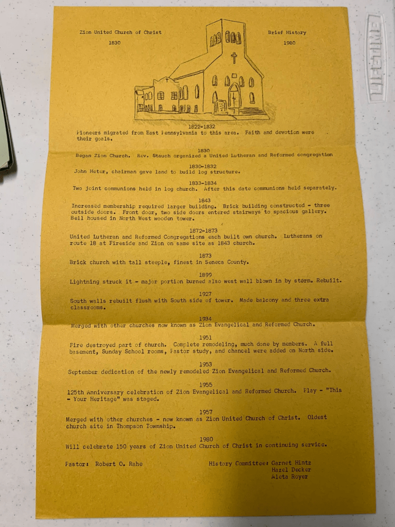 Zion Fireside United Church of Christ was founded in 1830. Originally an Evangelical and Reformed Church, Zion joined the UCC denomination when the denomination was formed in 1957.